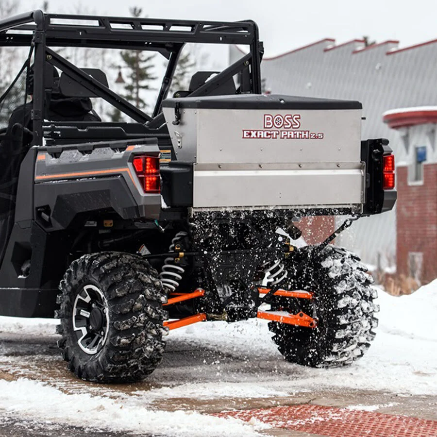 BOSS spreaders have earned a strong reputation for innovation, durability, and dependable performance in the toughest winter conditions. Trusted by contractors and property owners alike, BOSS designs spreaders that combine rugged construction with operator-focused features. Intuitive controls, responsive material delivery systems, and advanced lighting options help improve visibility, reduce fatigue, and keep operators productive during long snow and ice events.