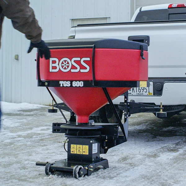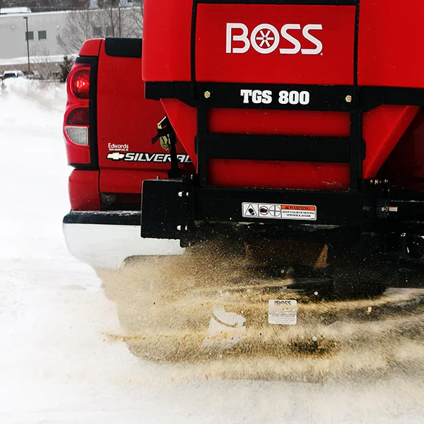 BOSS spreaders are designed to distribute a variety of materials, including rock salt, sand, salt/sand mixes, and other de-icing products.
