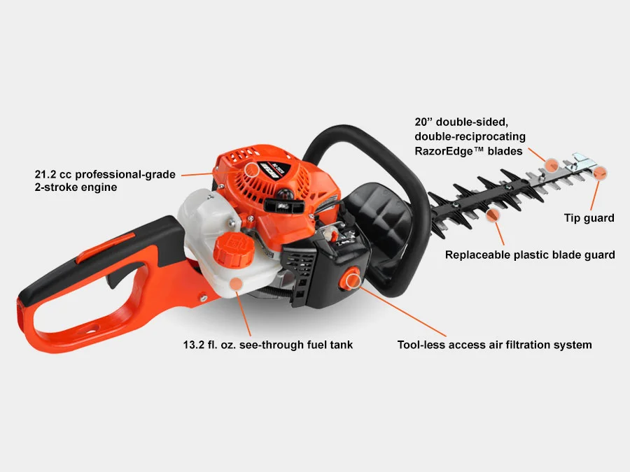 ECHO hedge trimmers are lightweight yet durable, designed to handle everything from large, tall hedges to smaller hedgerows. Double-sided blades with tip guards provide superior cutting performance, while features like front handle lockout ensure user safety and ultra-fast, precise cuts. Ergonomic handles and balanced weight distribution help reduce fatigue during extended trimming sessions, making them comfortable to use for both homeowners and professionals. With powerful engines or battery options and rugged construction, ECHO hedge trimmers deliver consistent, reliable performance season after season.