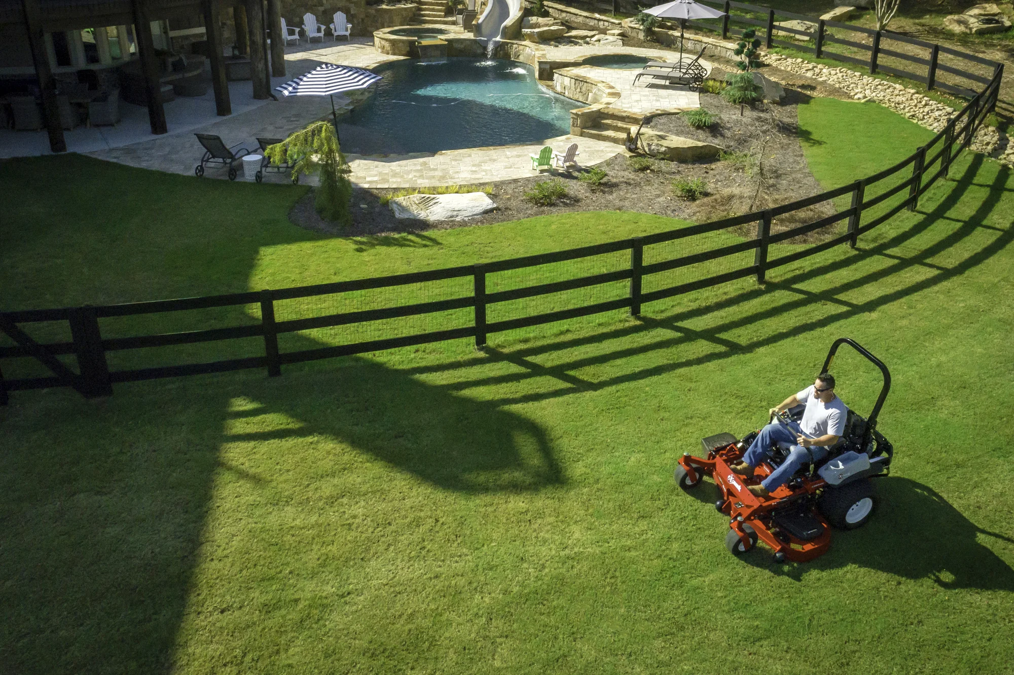 Decks adjust from about 1.0" to 5.5" in 0.25-inch increments, giving you very fine control over grass height directly from the operator seat.