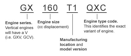 Honda engine model numbers begin with “G” to identify them as Honda general-purpose engines. The letters and numbers that follow indicate the specific engine series and configuration.