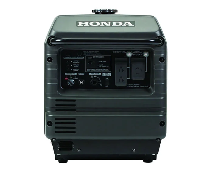 • 196 cc Honda GX200 engine• Electric start• Super quiet & fuel efficient• CO-MINDER: advanced carbon monoxide detection system• Advanced inverter technology• 3.4 gallon fuel tank capacity• Power for furnace, fridge, most 13,500 BTU RV AC units, & more• Oil Alert protects the generator by shutting the engine off when low oil is detected• Add more power with parallel capability