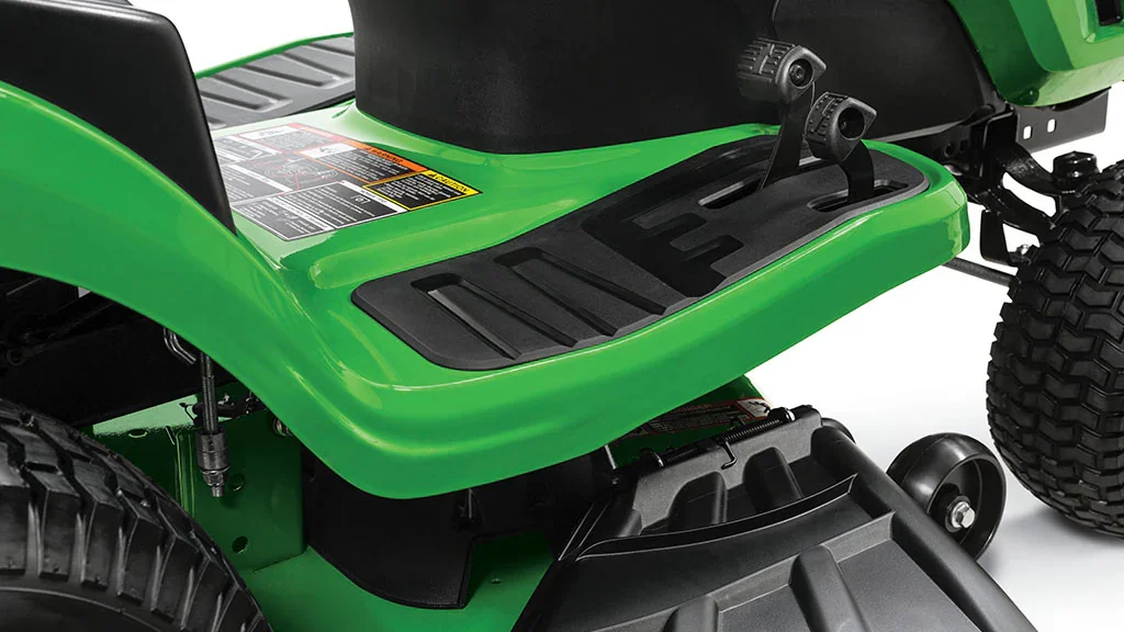 Built for durability and dependable performance on smaller properties, the John Deere 100 Series is engineered to give homeowners a simple, reliable mowing experience. Its rugged 12-gauge, robotically welded steel frame provides long-lasting structural strength, while the versatile 3-in-1 Edge Cutting System allows you to switch seamlessly between mulching, bagging, and side-discharging based on your lawn’s needs. Easy-to-use controls, smooth steering, and a comfortable operator station make mowing feel natural even for first-time tractor owners. Ideal for routine yard maintenance, the 100 Series offers the perfect balance of capability, comfort, and value for lawns up to one acre.