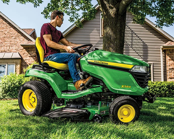 John Deere offers a range of lawn and garden tractors—including 100, 200, X300, X500, and X700 series—designed for everything from basic lawn care to larger, more demanding yard tasks.