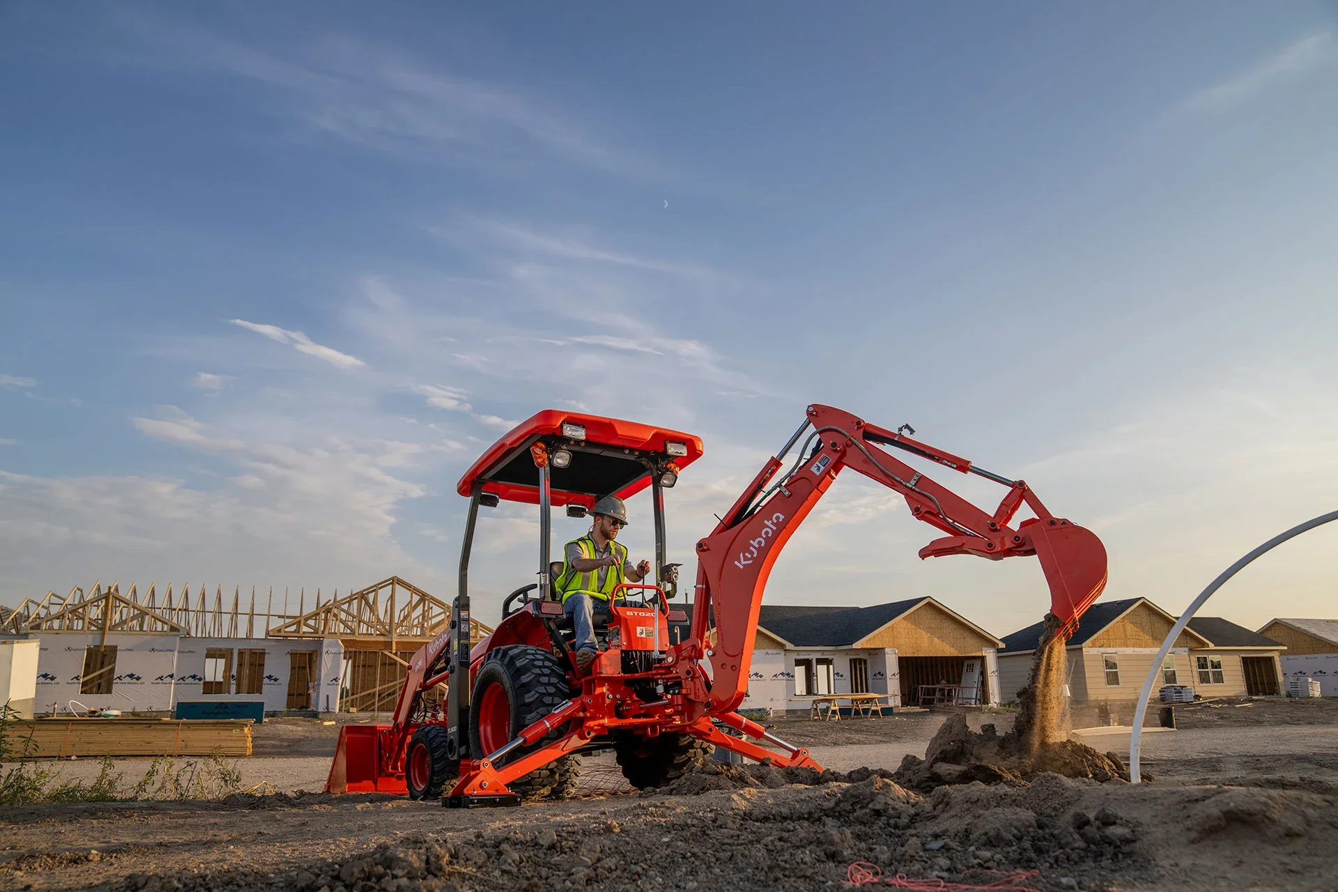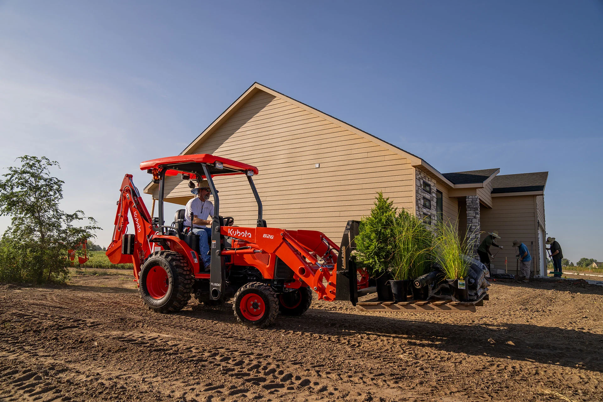 Combines tractor, front loader, and backhoe capabilities into one integrated machine for maximum jobsite flexibility.