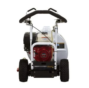 Little Wonder Walk Behind Blower 9270-12-01 features a Honda GX270 engine and 17-inch, 7 blade steel impeller to easily move leaves and debris. The large discharge chute is low to the ground for better blowing power and the ergonomic, adjustable handle design reduces vibration during use. The blower’s 10-inch pneumatic front tires and 13-inch turf tread rear tires offer incredible maneuverability and boast variable speeds up to 4.1 mph forward and 2.5 mph reverse.