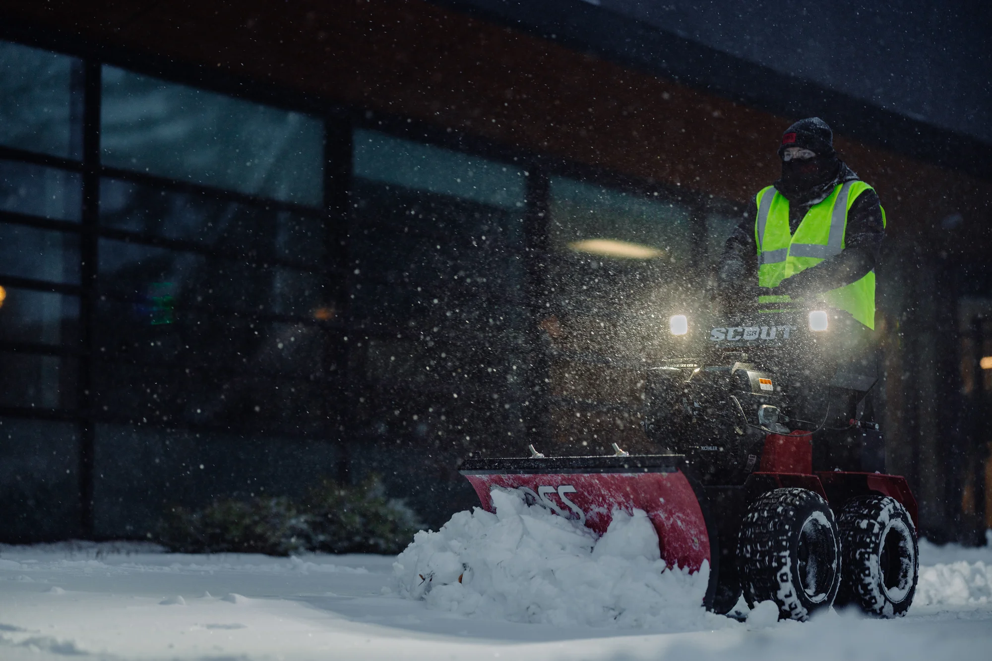 The Scout is optimized for pedestrian routes, helping crews maintain safe, clear sidewalks and walkways quickly and effectively after snowfall events.