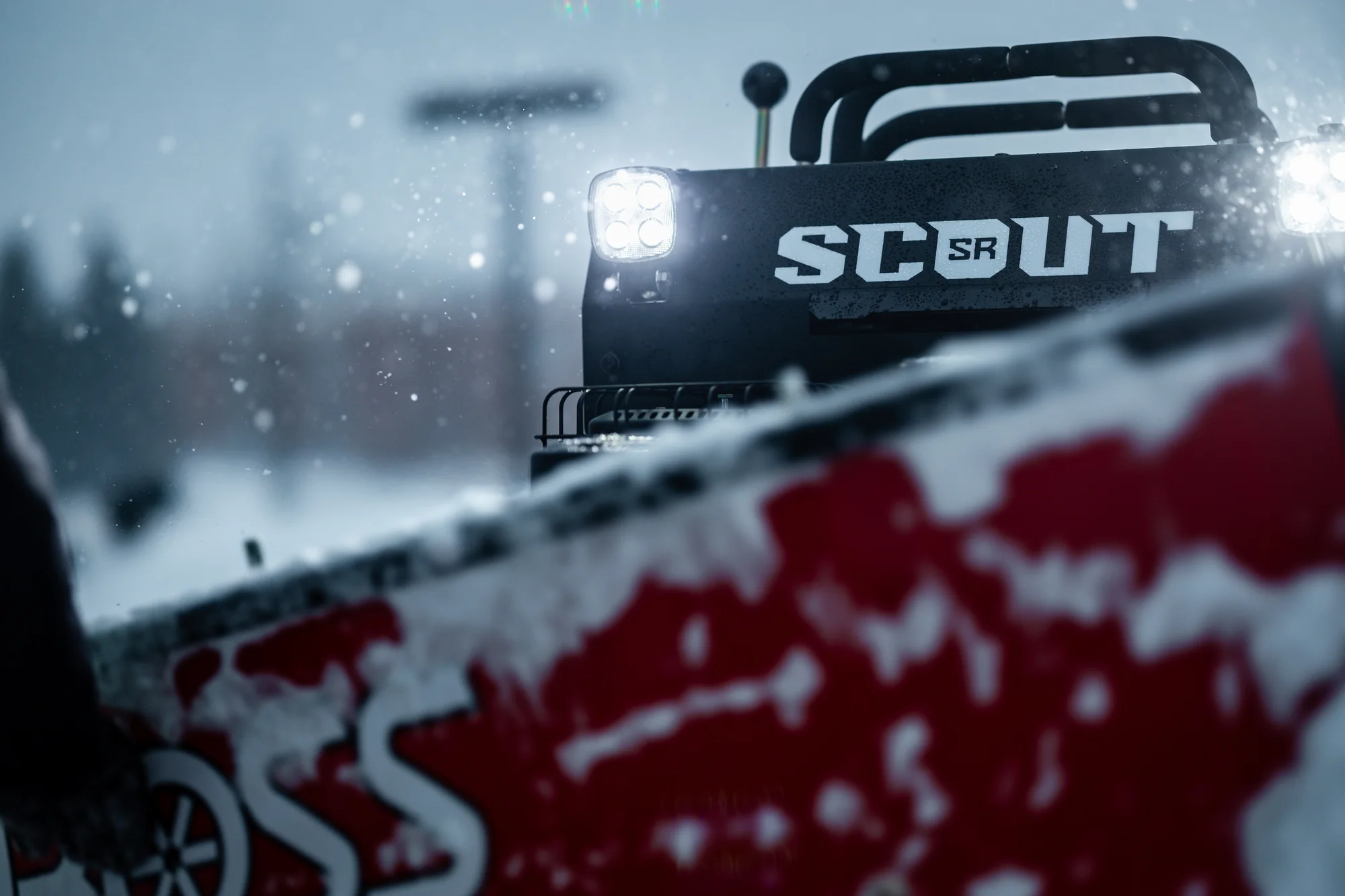 The Scout is engineered to maintain traction on snow-covered and icy surfaces, helping operators maintain control and steady forward movement during winter conditions.