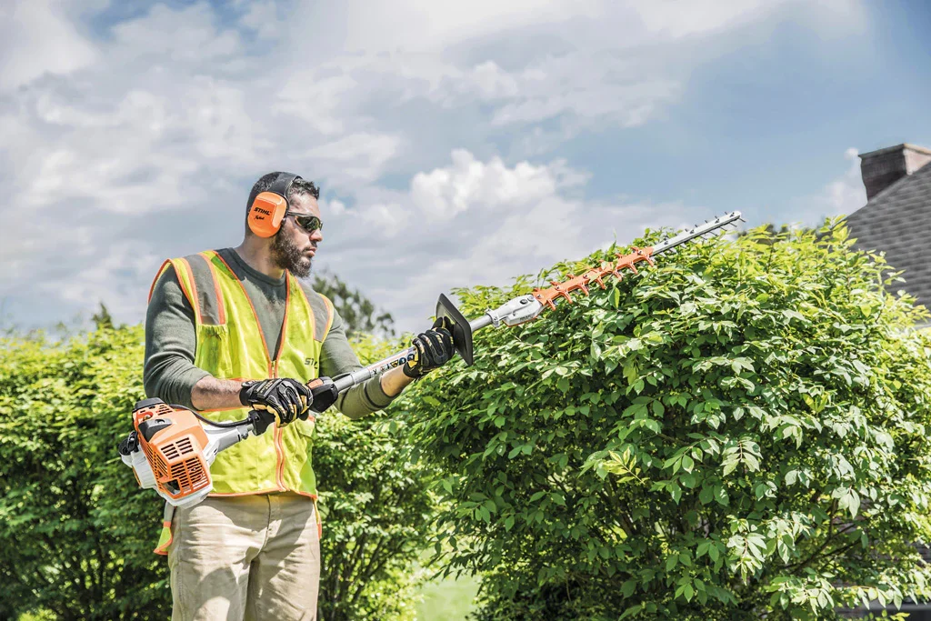 STIHL Hedge Trimmer HL 100 K-0 with 31.4 cc engine and 20-inch blade features a 42-inch shaft for pruning extra-tall and wide hedges. Added torque and a fixed-angle trimming head deliver great cutting power for tough brush, while low emissions allow landscapers to remain environmentally-friendly.Click here to learn more about Stihl Hedge Trimmers