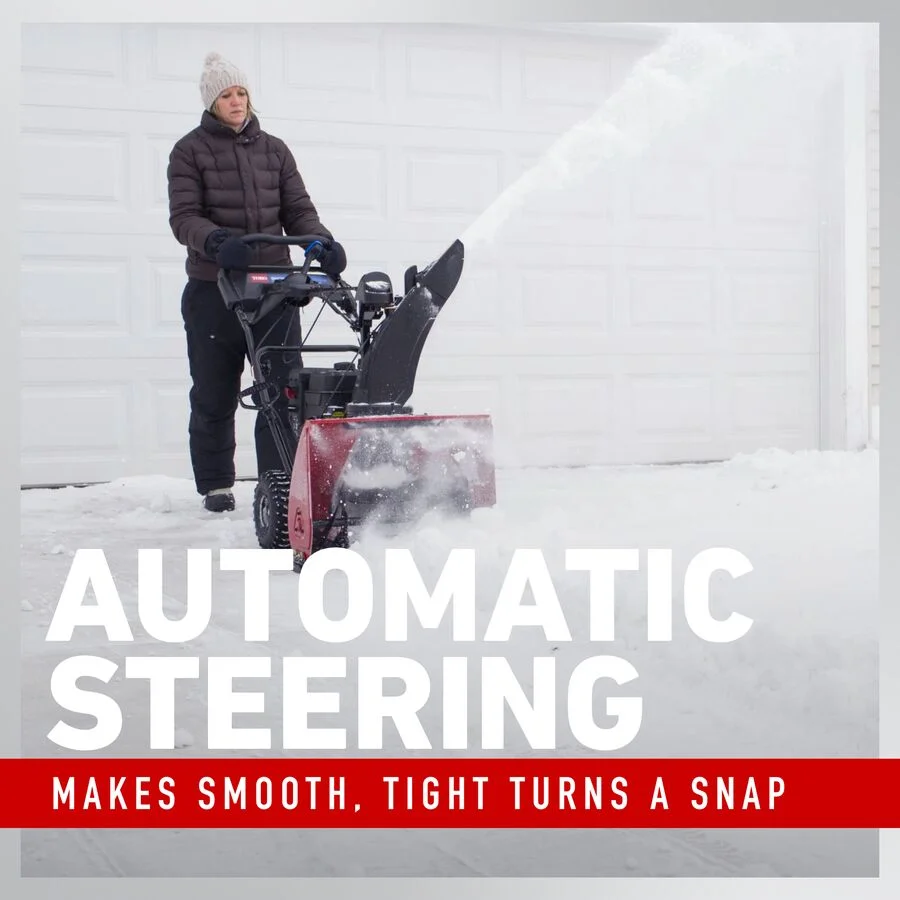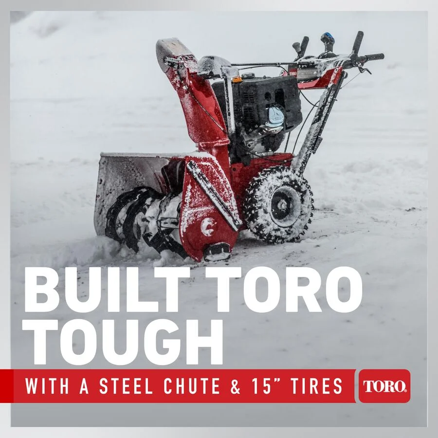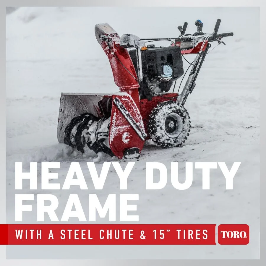 Toro two-stage snow blowers are built for heavy-duty performance, easily handling wider driveways and deep, wet snow. The steel rotor with rubber paddles breaks up tough snow and directs it efficiently, while the Quick Stick® chute control allows on-the-fly adjustments. Personal Pace® self-propel automatically matches your walking speed, and automatic steering enables tight, smooth turns without extra effort. Deep-lug tires provide superior traction, while the beveled chute design clears snow faster and throws it farther. Constructed with a one-piece welded unibody frame, reinforced handles, drift cutters, and heavy-duty skids, these machines are engineered for rugged durability. Additional features like a scraper, Anti-Clogging System (ACS), sub-zero chute materials, and robust components make these blowers ideal for heavy, wet snow in the toughest conditions.
